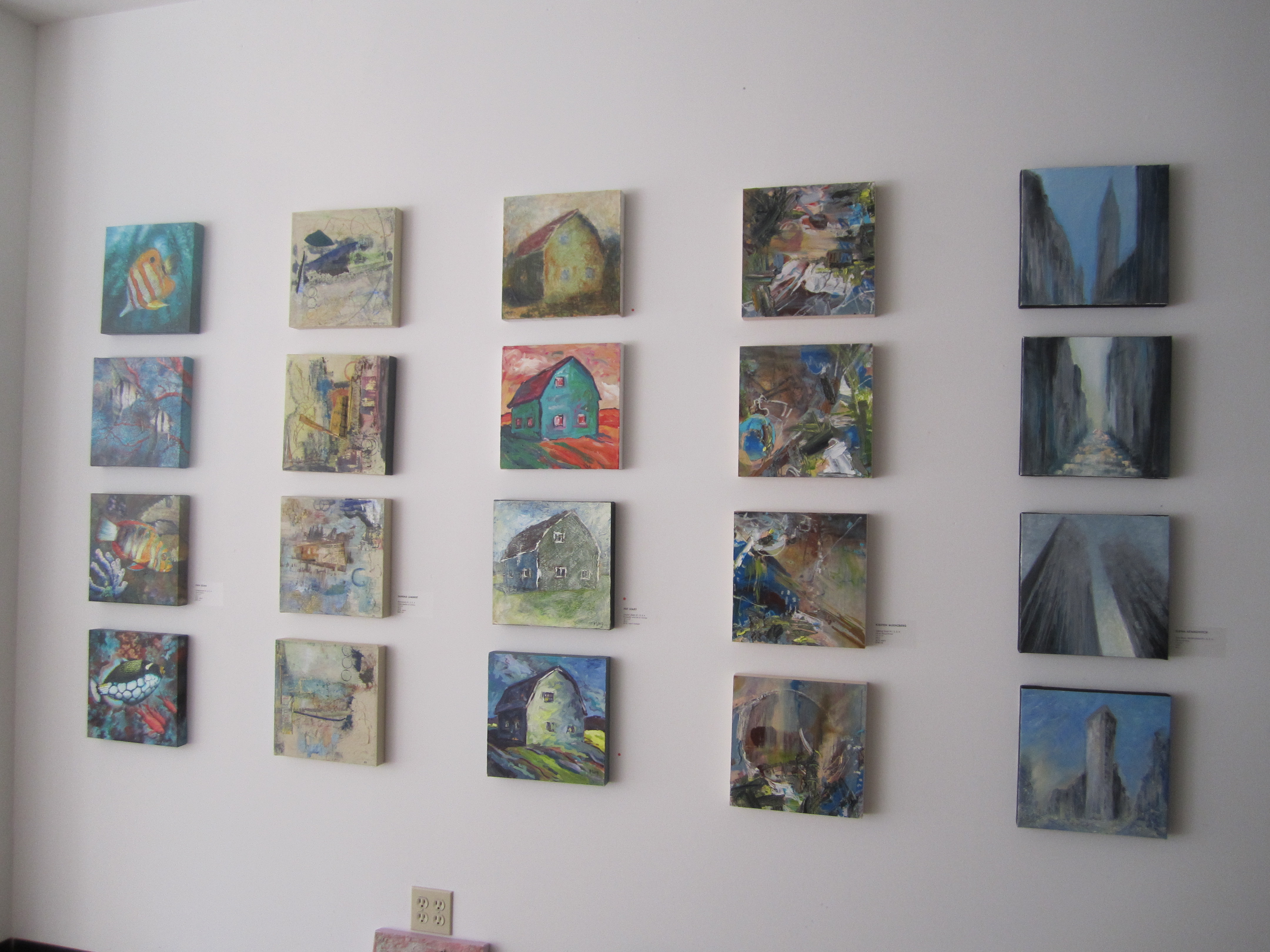 1. Congratulations on the blog and the show. The paintings are wonderful and fun all being the same size and yet so different. Good luck for future shows!