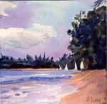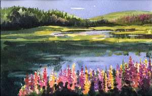The idea was germinated at the cabin in Algonquin Park. Those of us who originally had the faith and imagination to accept the invitation to the “art week-end” already shared something of a common spirit. Of course, it was Liz in her infinite generosity who proposed we have a group show at 888. While I had already experienced the exhibition process, some of the others needed a bit of persuasion. But eventually a group esprit pervaded and the show idea took on its own life! Most of us had all been in the watercolor classes at the AGO for a few years, while Liz, Sheila and Mado had already moved to acrylics, at least part time. Everyone had a backlog of art pieces. The first step in the commitment was for each of us to decide on an image for the publicity show card and gallery website, and a name for our exhibition. Since many of us had traveled to Santa Fe together and had the weekends at Source Lake in Algonquin, we decided to call the show “Journeys”.