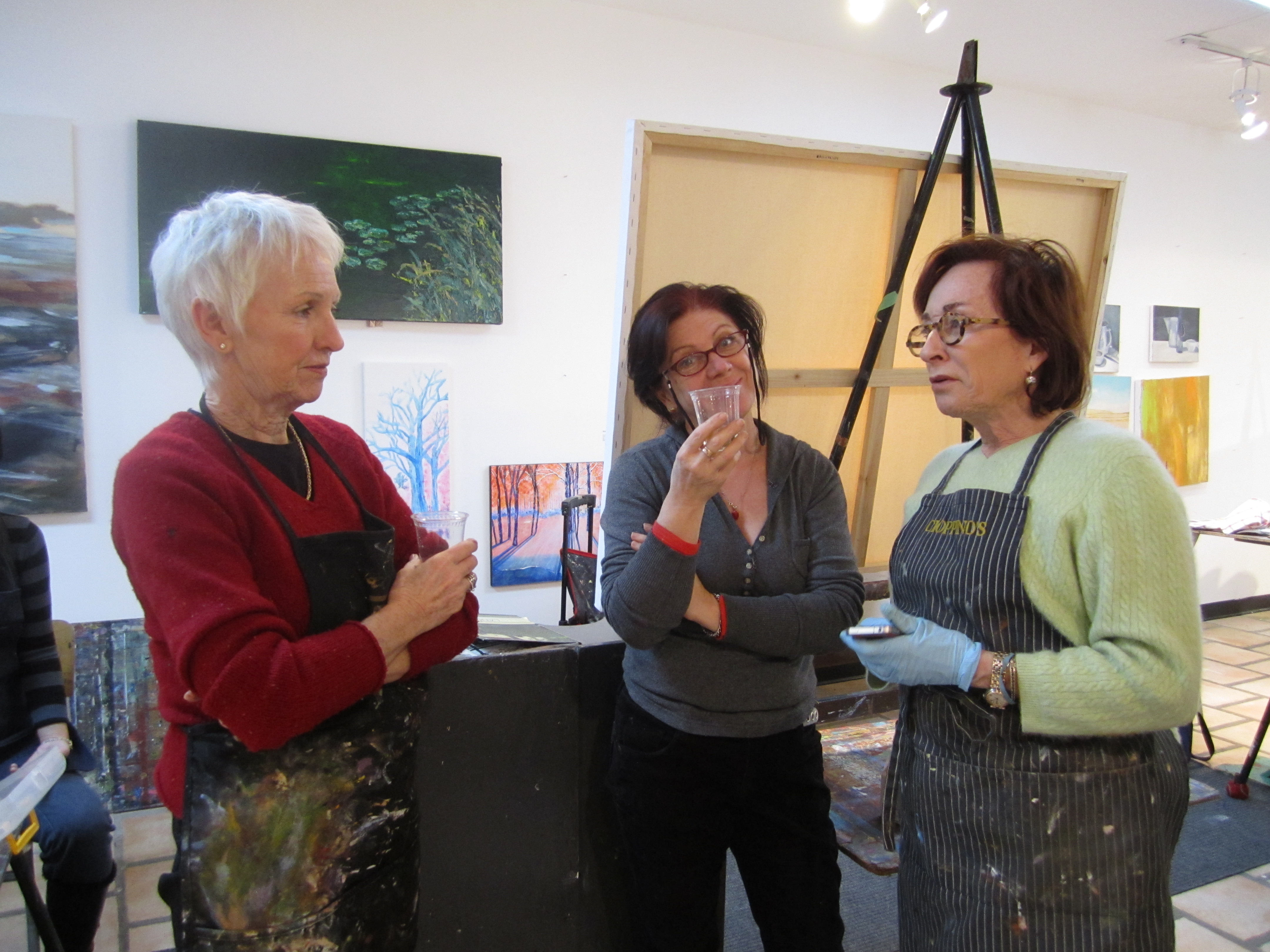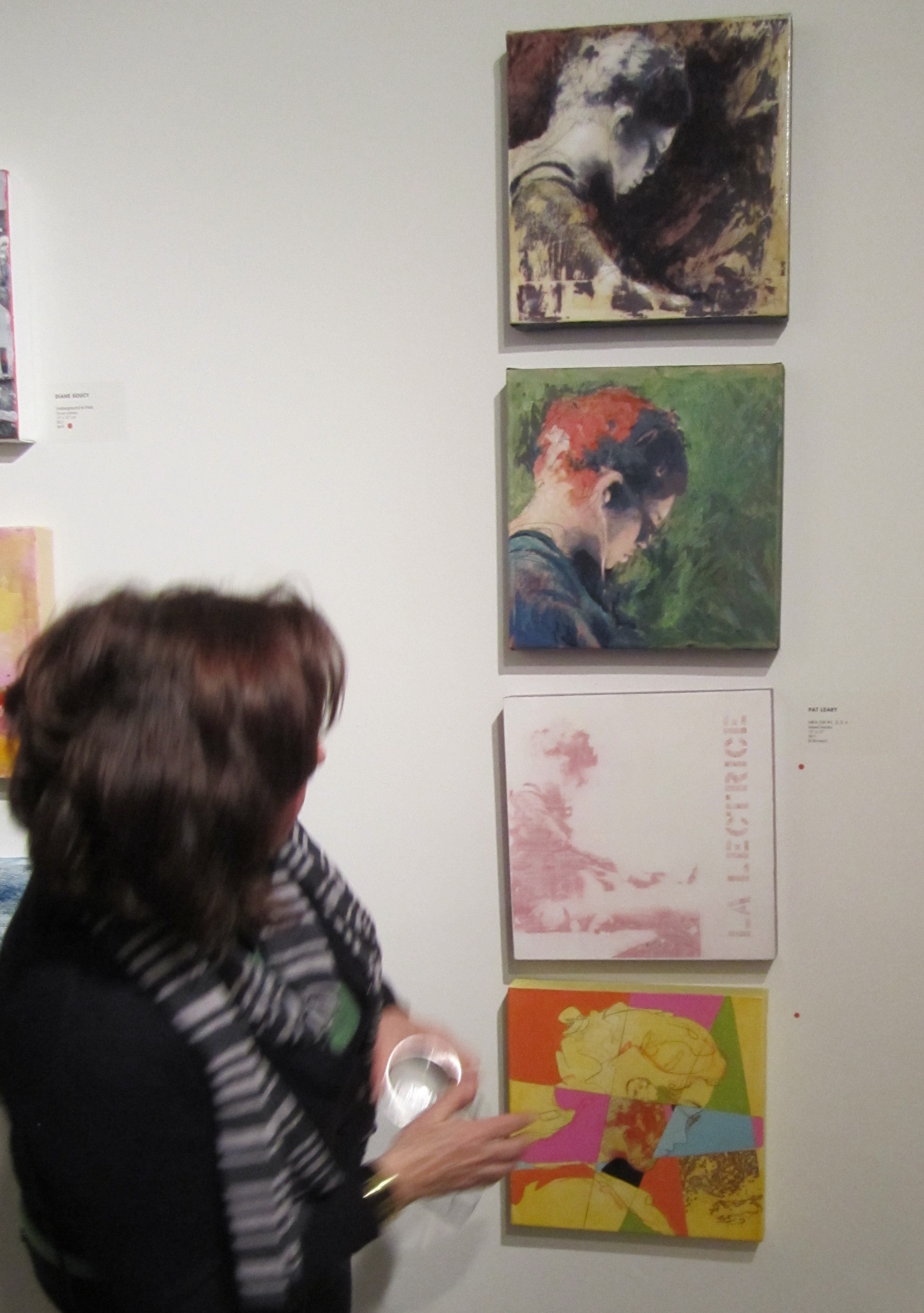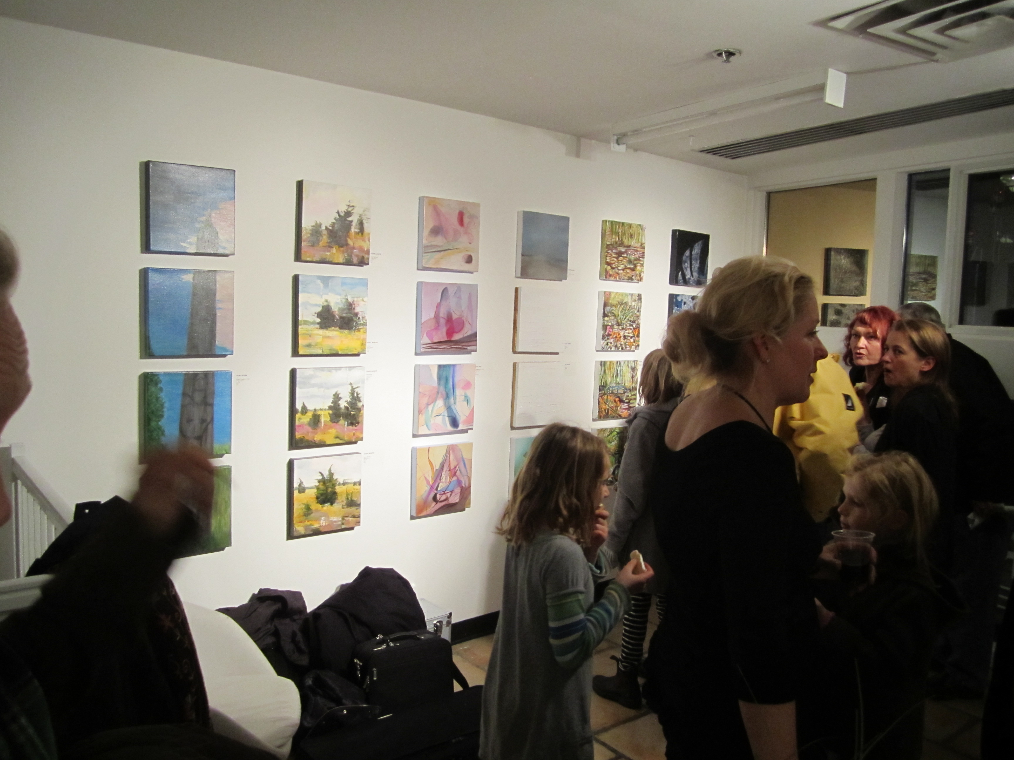 The end of the Fall session at Project: Art ends in the “little” exhibition. “Little” meaning all canvases are either 12 x 12 inches or 24 x 24 inches. There is always an energy associated with this show because most people during the summer had been away traveling to new places and then returned armed with new ideas to translate to canvases. All well and good, but the realization quite often does not match the idea. There is sometimes an agonizing struggle to ensure pieces that are exhibition worthy. But, the deadline of an exhibition is an exhilarating incentive!