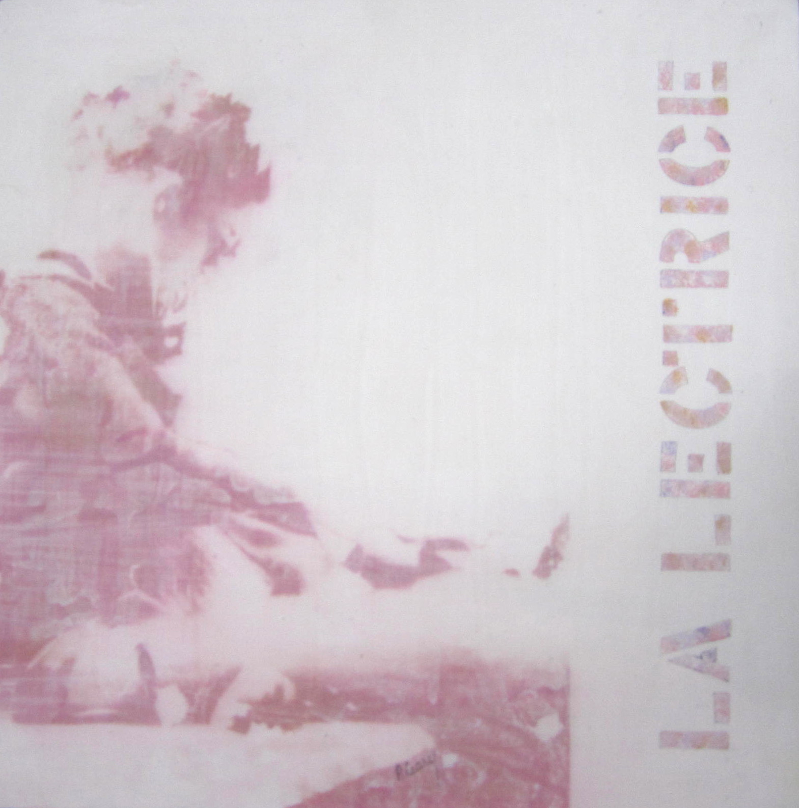 The four paintings all have photo transfers as their base, with acrylic over painting and either graphite or Caran d’Ache, water soluble artists’ crayons from Switzerland, as top sketching.