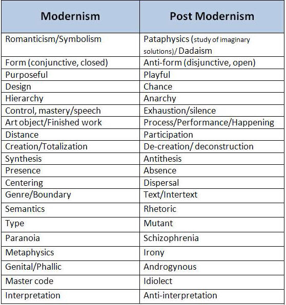 If you would like to further explore the meaning of Post Modernism in its broadest sense, I’ve attached the 4 minute YouTube video below, which will either further confuse you or maybe give you more insight into the complexity of the movement.