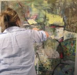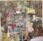 At first we proceeded in an orderly fashion. The first person (we’re all women as it happens) applied anything she wanted to the blank canvas and then drew a name randomly for the next person to “have a go”. If you didn’t like what the previous person added, you just painted over it. We all knew that whatever we added would probably be submerged into the greater scheme. Eli added the gauze for texture; Lizzie, strong graphic lines in ink. Sometimes you would love an area that was added and then be disappointed when it was gone! It really was an ongoing performance, a living dynamic! … Sometime in the middle of the 10 weeks, I asked Ewa to re-state the original goals, as I had rather lost sight of the process. She gave us a chart that she had in her days at OCA (Ontario College of Art). And then I started to try to find a definition of Post Modernism, which apparently is not easily definable and adds to the mystique of the movement. It is almost defined by what it is NOT! Here is a simplification of Ewa’s chart: