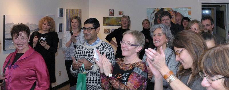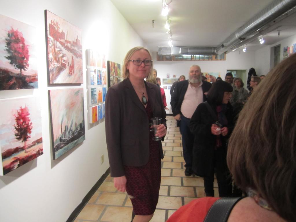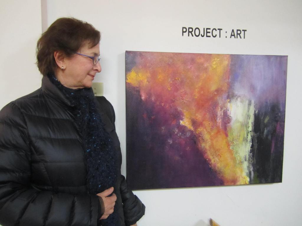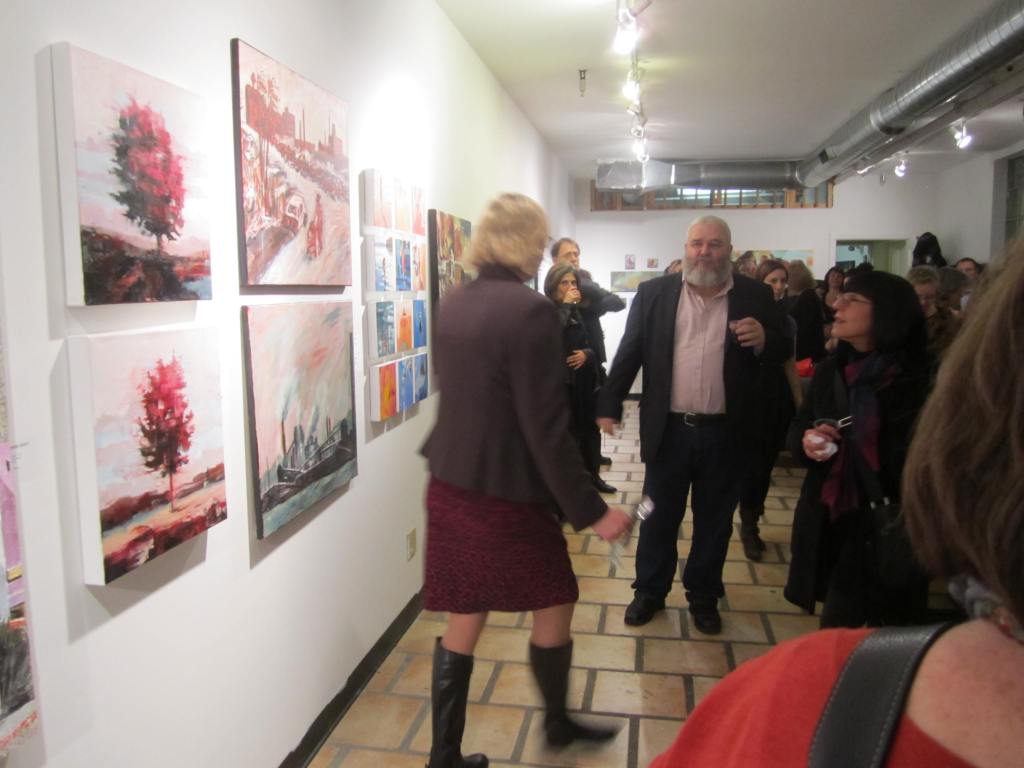 Still, at -12°C , the artists and fans of the annual Project: Art December Exhibition did not disappoint! Our erstwhile somewhat grungy studio/work space was once again magically transformed into a funky Queen West gallery space, by Ewa Stryjnik and her loyal volunteers. Ewa is the founder and driving force behind Project: Art! … I overheard Kerry Kim extolling her virtues as a painter, teacher, and curator, who provides such a stimulating environment to adult painters in this city! See picture gallery below: