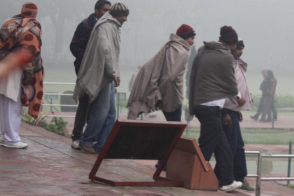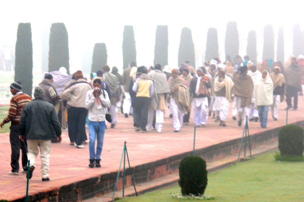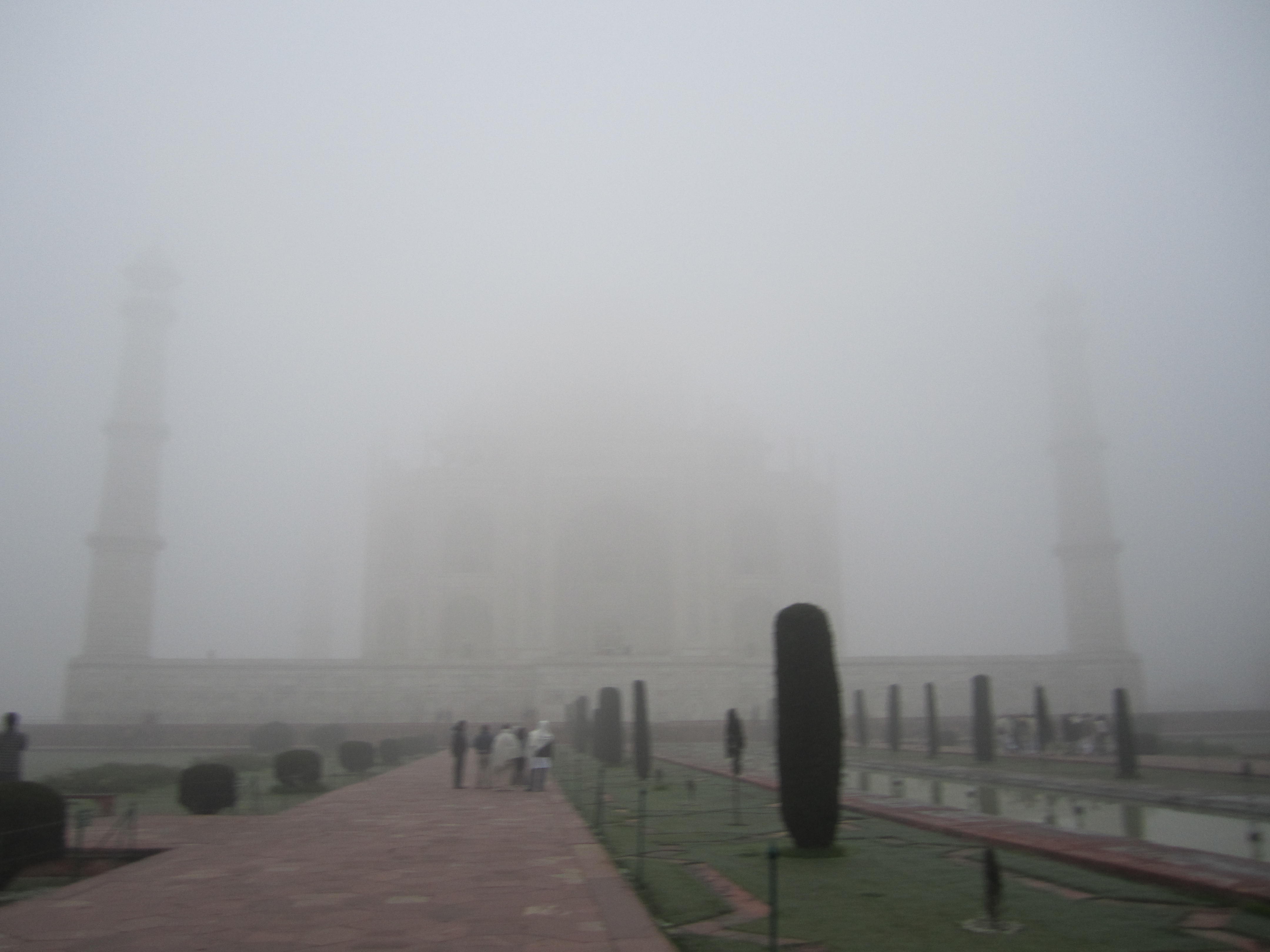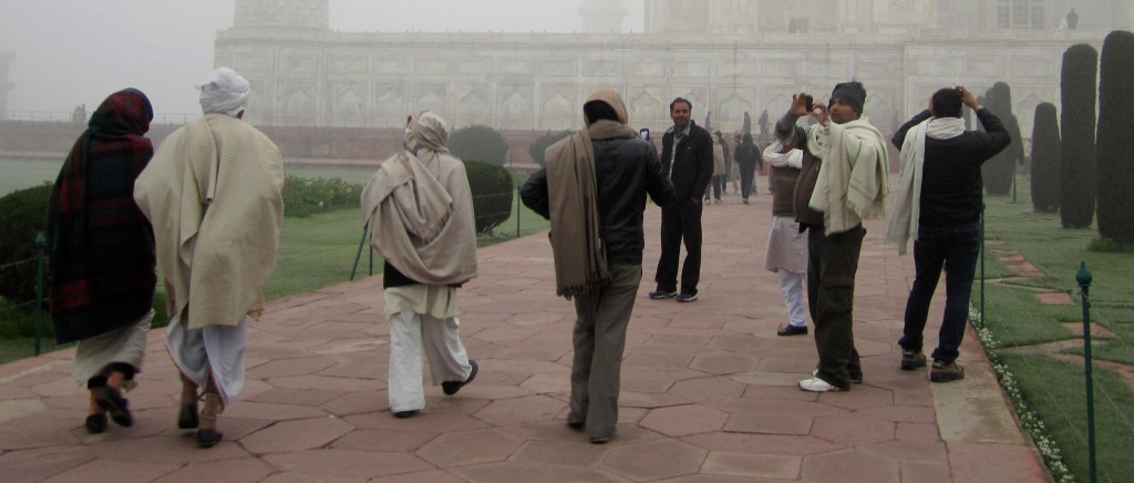Yes, at 8:00 am on a dismal, dreary, overcast and chilling Thursday morning on January 30th, this is my view of the Taj Mahal. You can’t know how disappointed we were. The famous white marble beacon was not, as the guide-book promised, “drawing tourists like moths to a wondrous flame.”