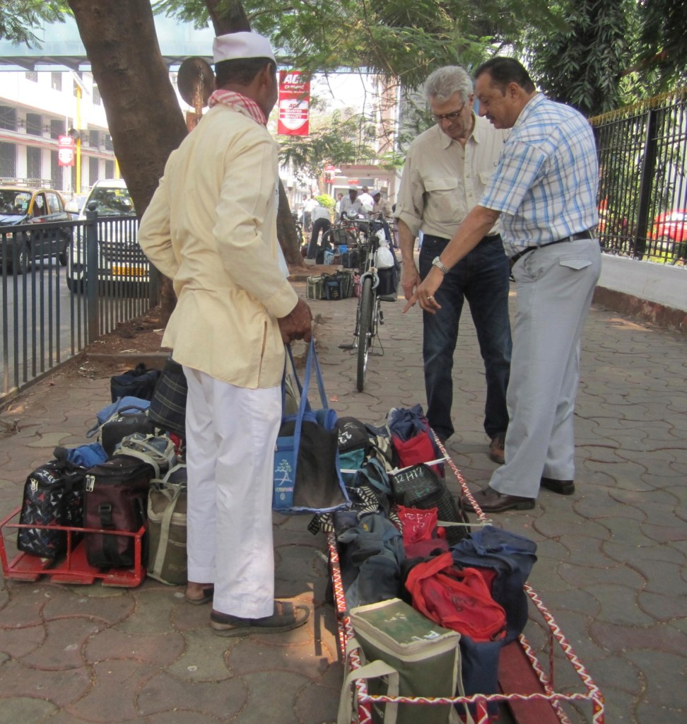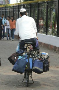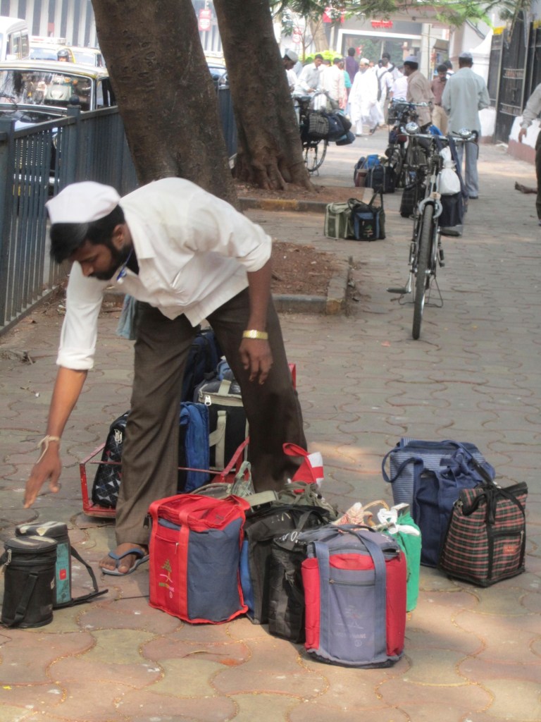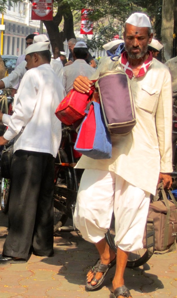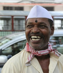 Take a good look at this man! He’s wearing the requisite white topi hat. He’s happy and confident. … He is most likely what we would consider poor and he probably does not read or write; yet, he functions as part of a very well-oiled machine that feeds the workers of Mumbai in the world’s most ingenious food delivery system. A hot, home cooked meal prepared by a loved one is brought to an office worker or student by this man. He is proud. And, he’s proud to be a Dabbawalla!